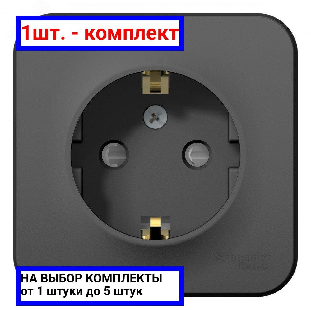 Купить Розетка BLANCA, открытый монтаж, с заземлением, со шторками, антрацит. BLNRA011116 Schneider Electric