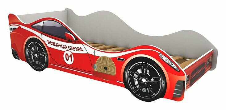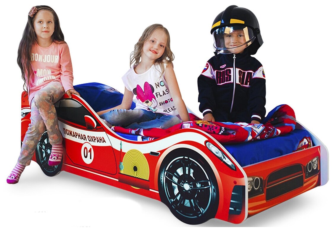 Детская кровать машина Пожарная охрана с ортопедическим основанием и бортиком