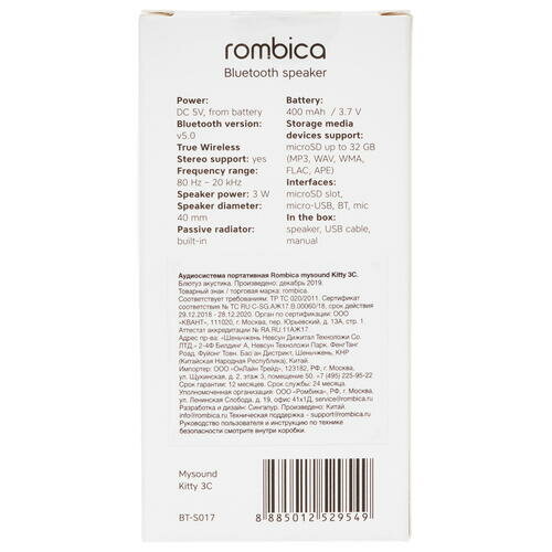 Портативная акустика Rombica mysound BT-S017 Kitty 3C