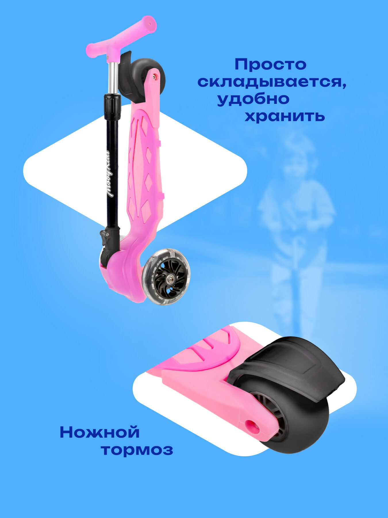 Купить Самокат детский трехколесный складной, 120 мм, розовый Moby Kids