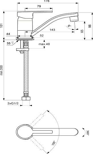 | Угол поворота рукоятки гориз. | 100 градусов |