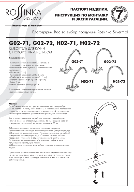 Смеситель для кухни Rossinka H02-71 Rossinka .