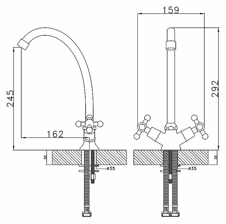 Смеситель Rossinka H02-71 для кухни с высоким поворотным изливом двухвентильный