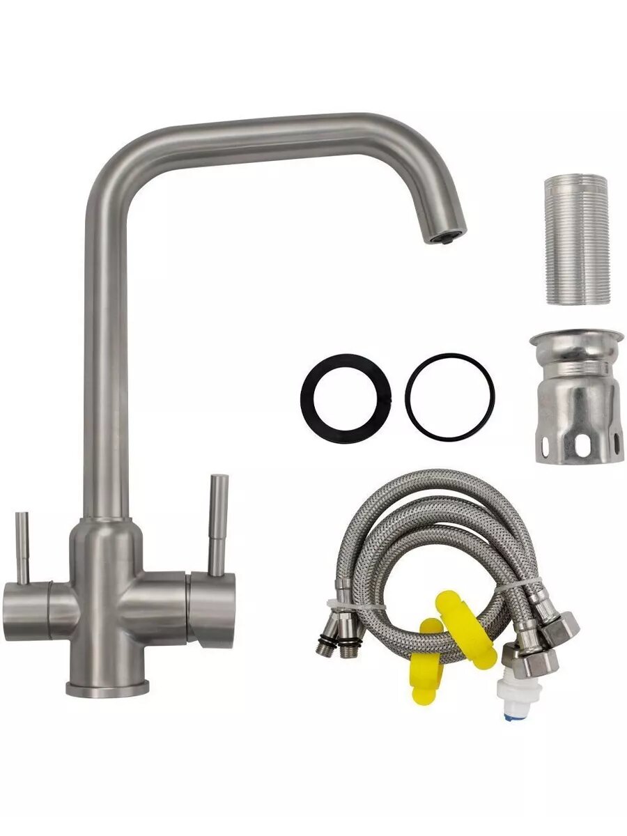 Смеситель кухонный MAGNUS с двойным выпуском воды для фильтра, из нержавеющей стали марка 304 Г-образный