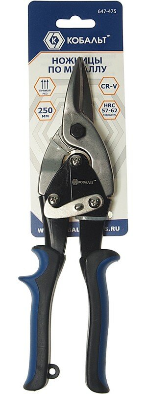 Ножницы по металлу ручные кобальт прямой рез 250 мм, CR-V (1 шт.) блистер (647-475)