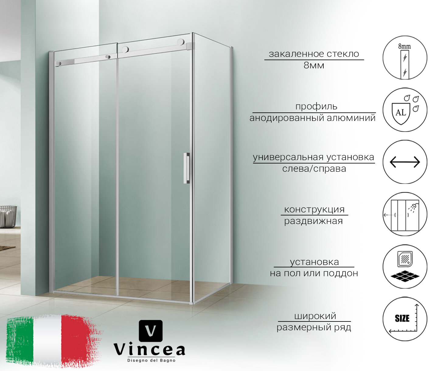 Душевой уголок Vincea Como VSR-1C8014CL, 1400х800, хром, стекло прозрачное