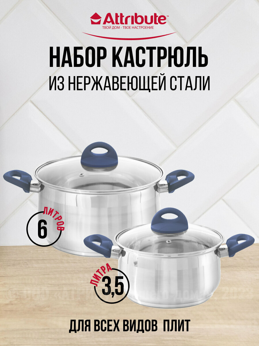 Набор кастрюль Attribute Magnifaca Basic ASM006 4пр. серый/синий 4 шт.