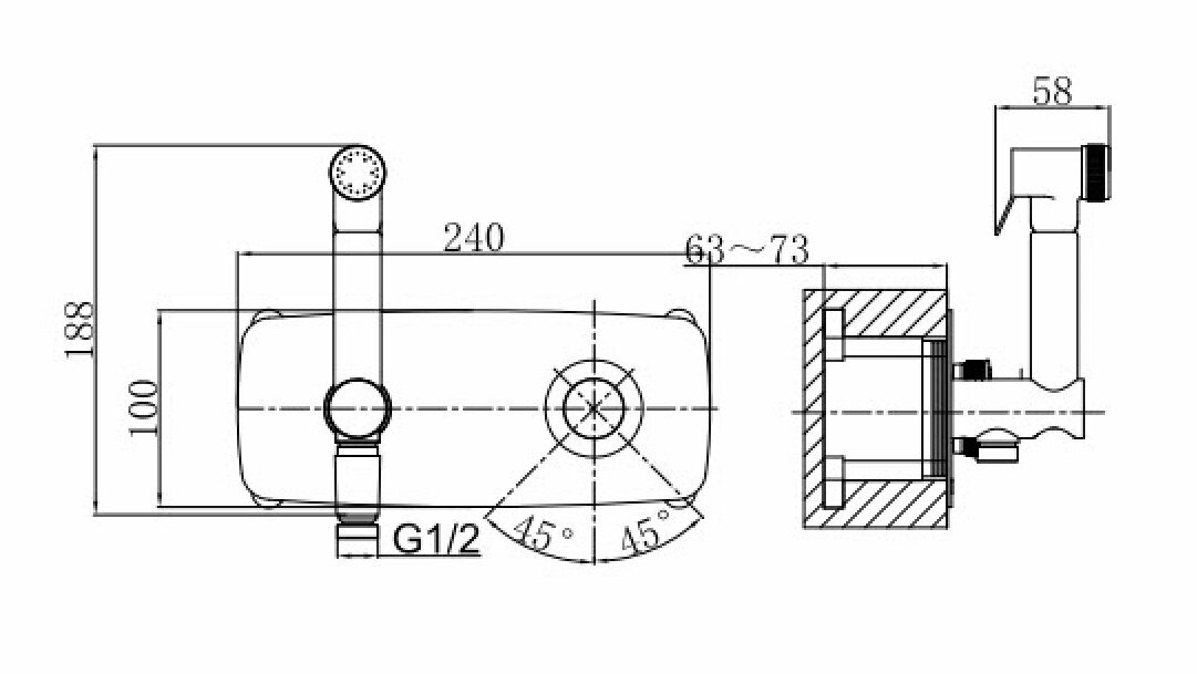 Смеситель для душа D&K Bayern. Alfeld DA1484501 с гигиеническим душем встраиваемый