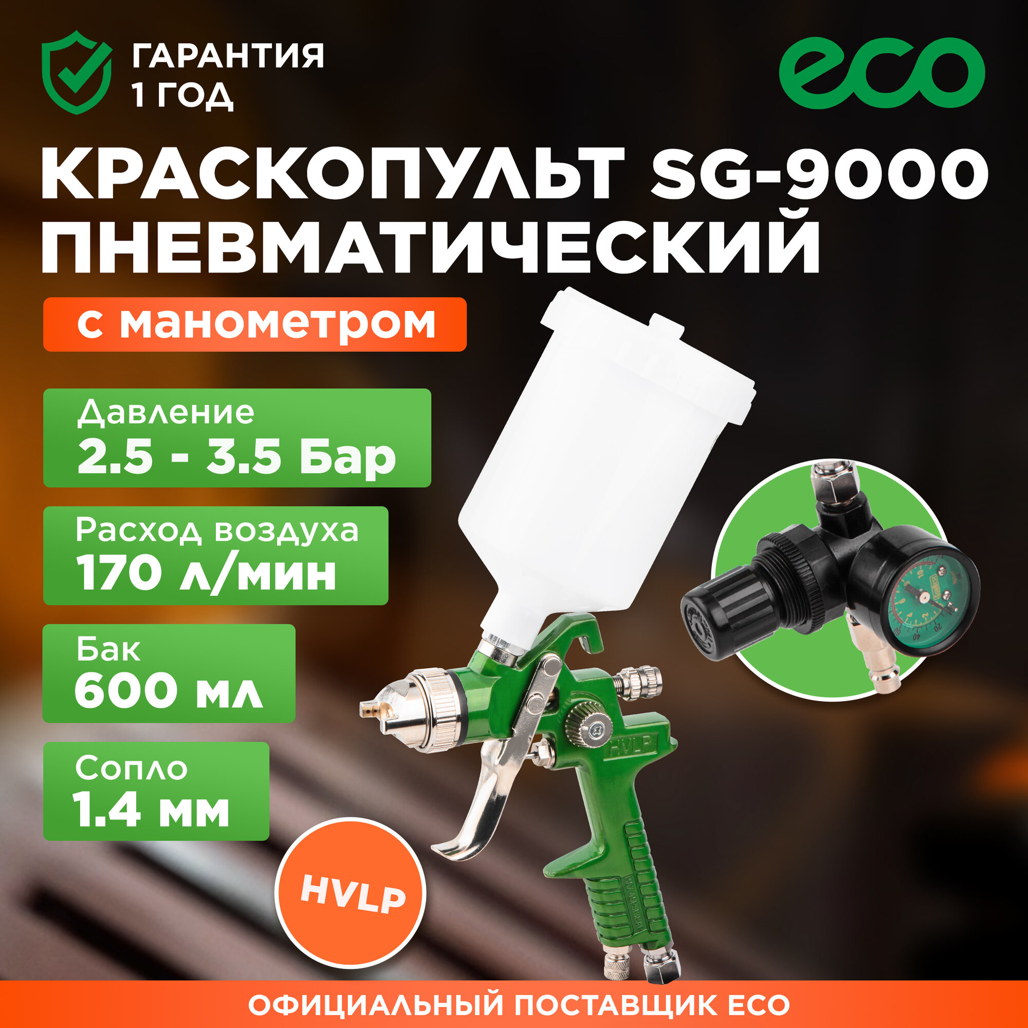 Купить Eco Краскораспылитель SG-9000 с манометром (сопло ф 1.4 мм) (HVLP, сопло ф 1.4 мм, верх. бак 600 мл)) (EC1535-14)