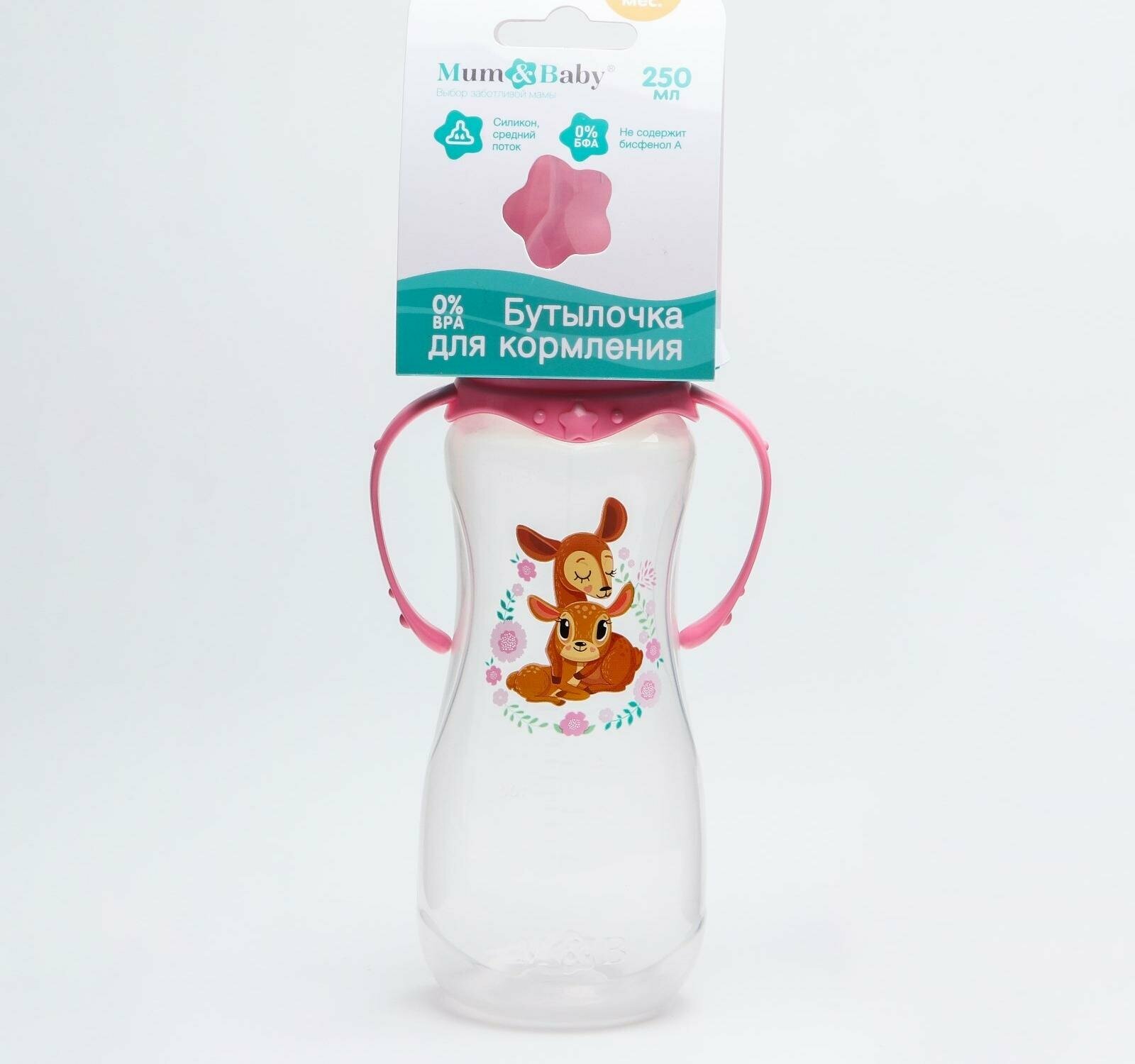 Mum&Baby Бутылочка для кормления «Оленята: мамы и малыши» 250 мл приталенная, с ручками