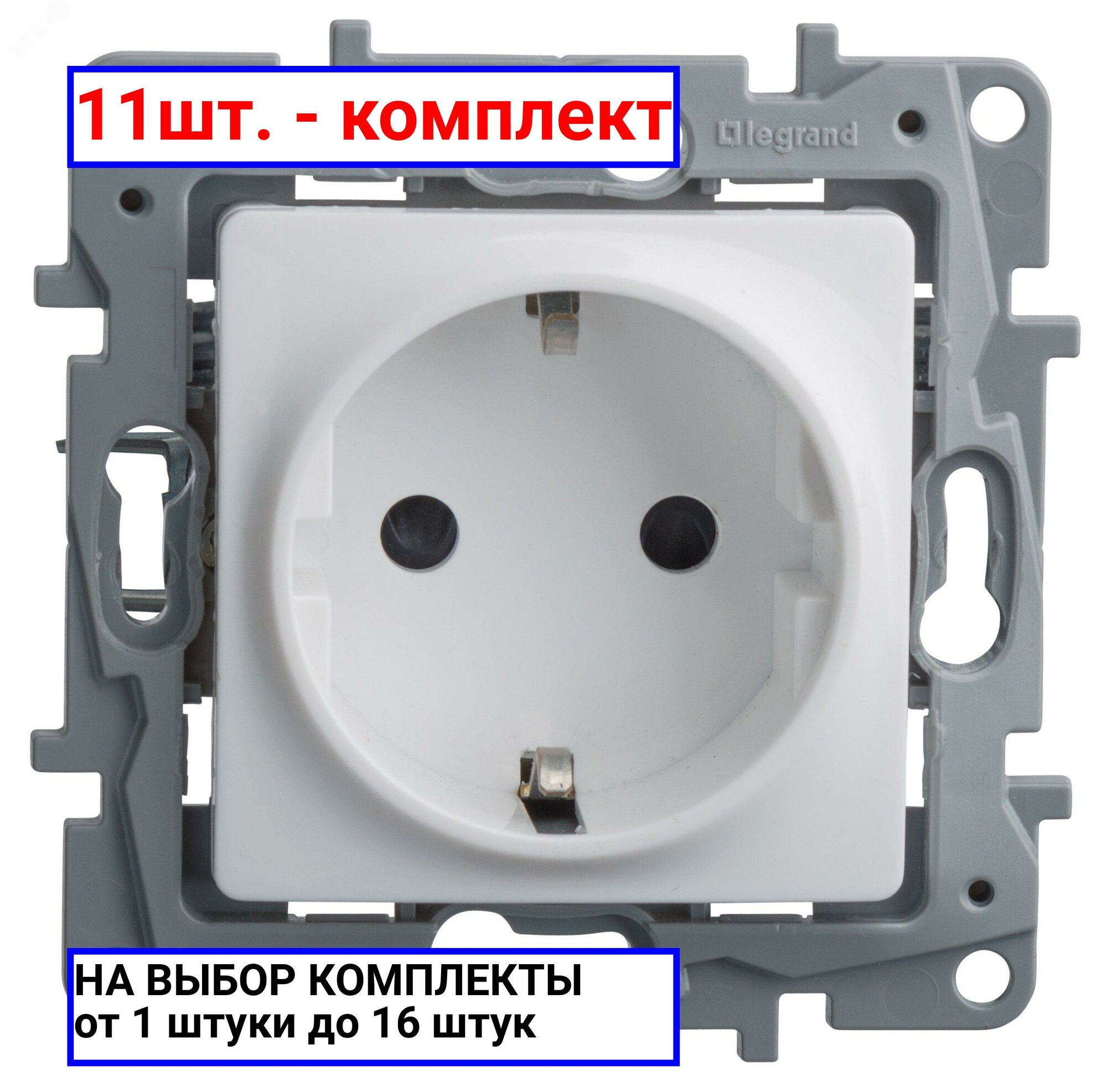 Купить 11шт. - ETIKA Розетка с заземлением со шторками белая / Legrand; арт. 672222; оригинал / - комплект 11шт