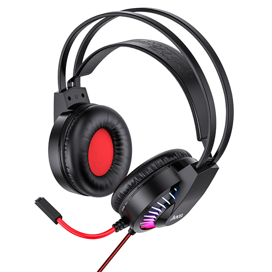 Игровые наушники с микрофоном HOCO Gaming W105 Joyful, Проводные USB+Jack 3.5mm, 2 м, RGB Light, Черный+Красный