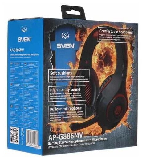 Игровые наушники с микрофоном Sven Ap-g886mv, черный-красный .