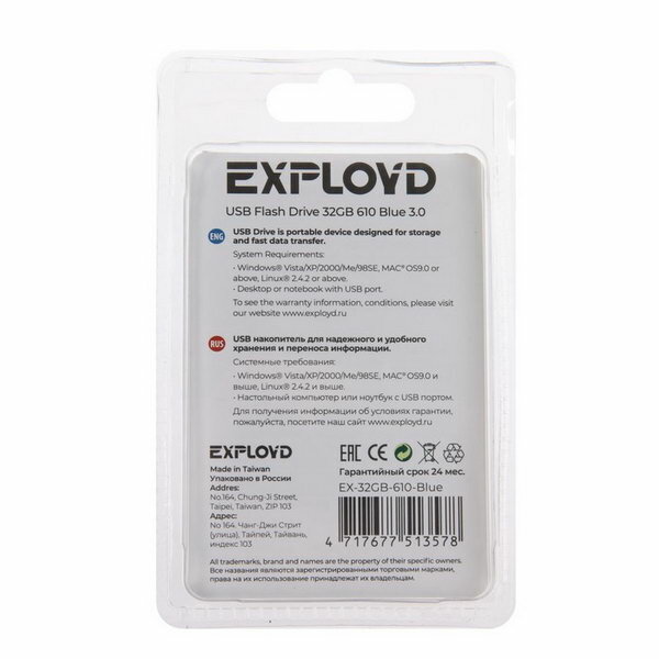 USB флэш-накопитель (EXPLOYD EX-32GB-610-Blue USB 3.0) интересное: