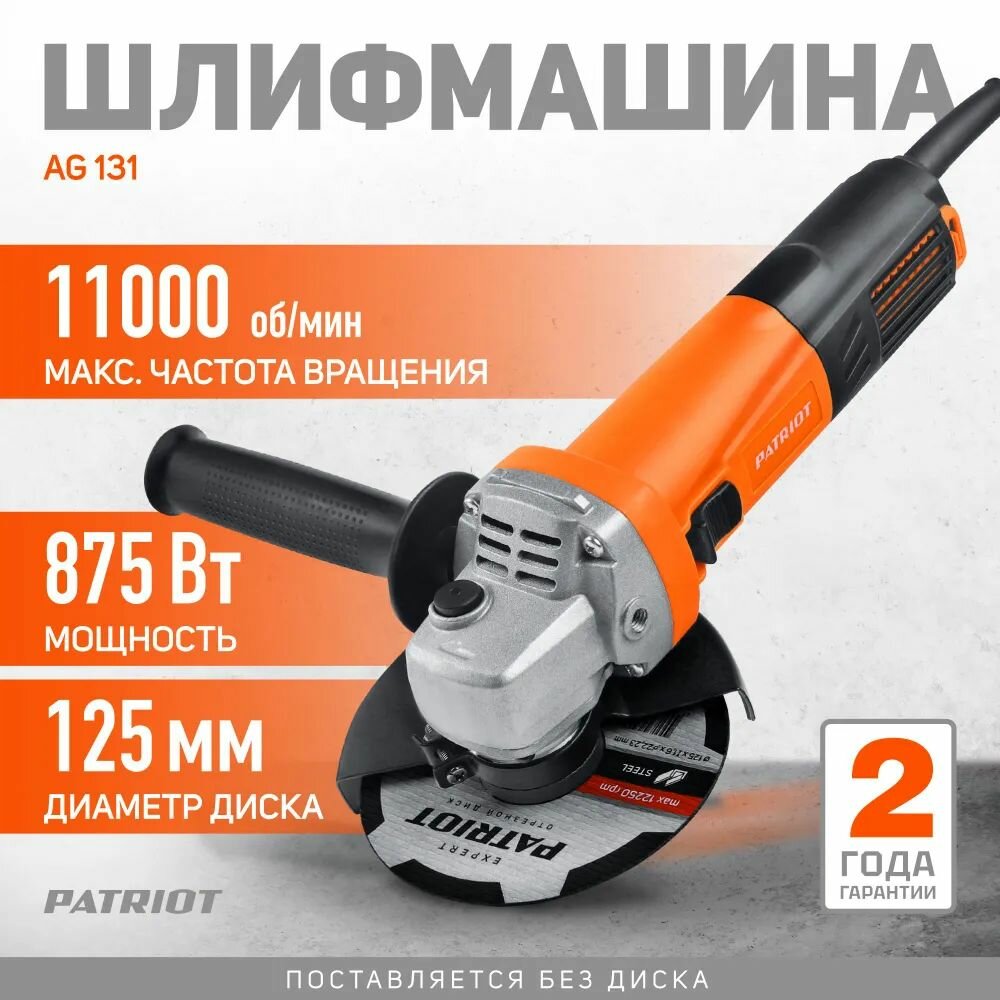 УШМ PATRIOT AG 131, 875 Вт, 125 мм, без аккумулятора