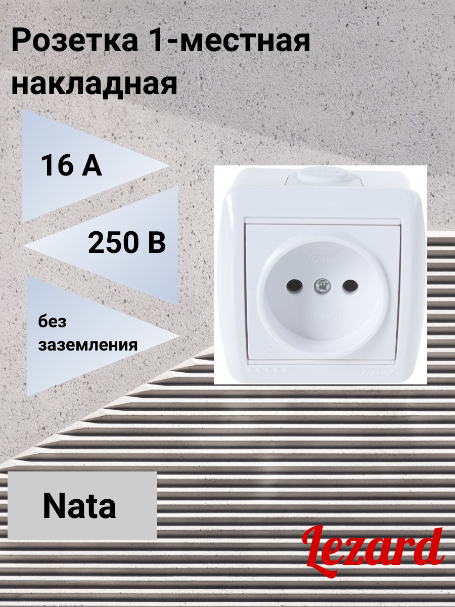 Розетка LEZARD 1-м ОП Nata 16А IP20 без заземл. керамика крем., 710-0300-121