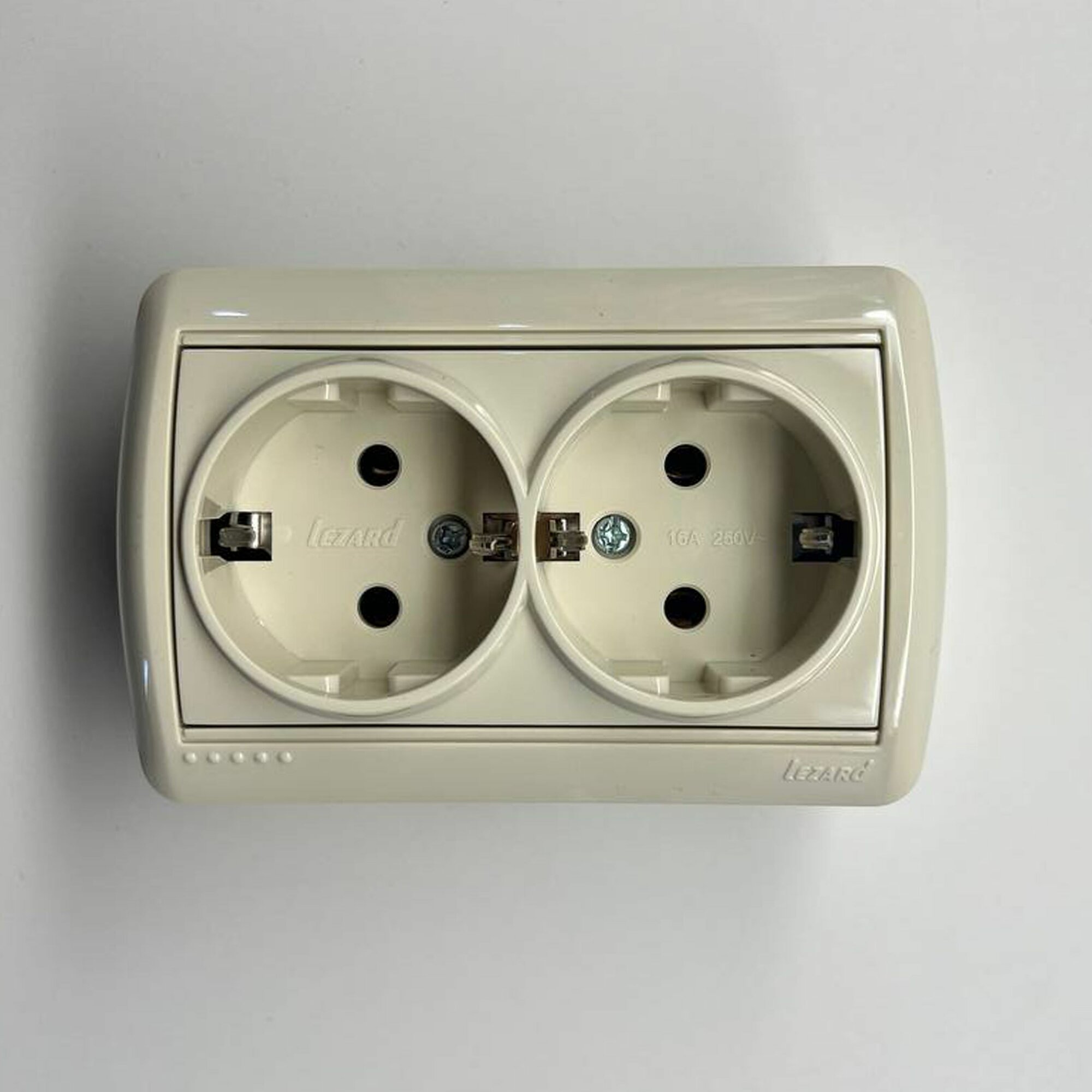 Розетка Lezard 2-м ОП Nata 16А IP20 с заземл. керамика крем., 710-0300-127