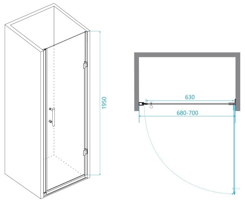 Душевая дверь RGW PA-06B 41080607-54 распашная 70х195. Размер регулировки 680-700 мм.