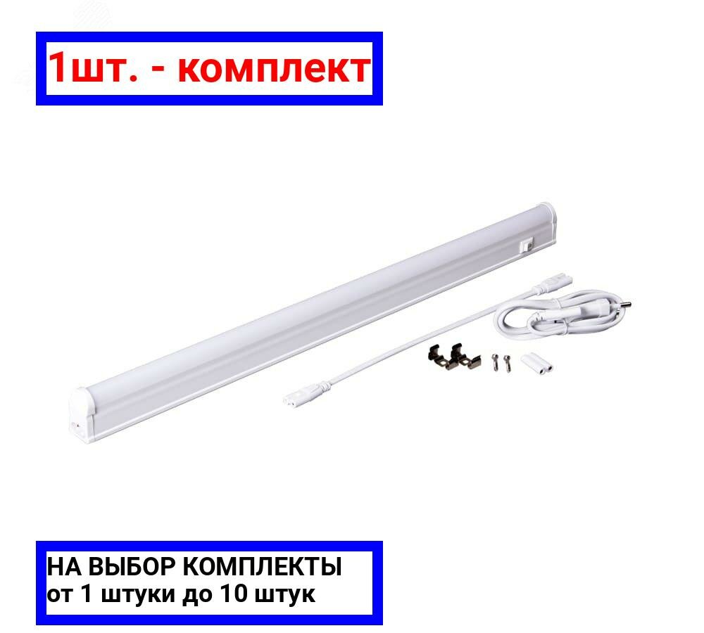 Jazzway св-к св/д линейный 6W(450lm) 6500K 450x22x36 IP40 выкл,шнур вилка PLED T5i-450 PL 6K.1036278