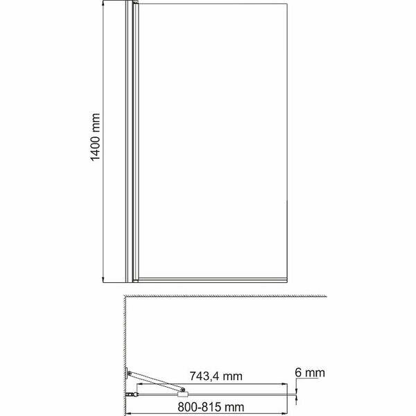WasserKRAFT 48P01-80 BLACK Fixed Berkel 48P Шторка для ванны неподвижная, прозрачное стекло