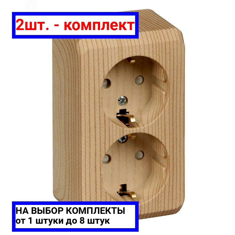 Купить 2шт. - Этюд Розетка двойная наружная с заземлением со шторками Сосна / Systeme Electric; арт. PA16-008D; оригинал / - комплект 2шт