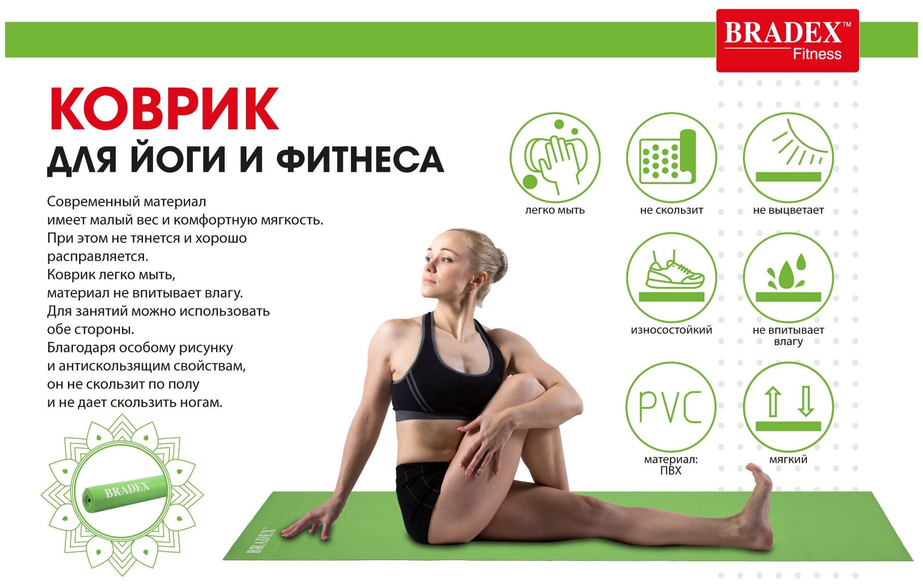BRADEX Коврик для йоги и фитнеса SF 0681, 173*61*0,4 см, зеленый SF 0681 интересное: