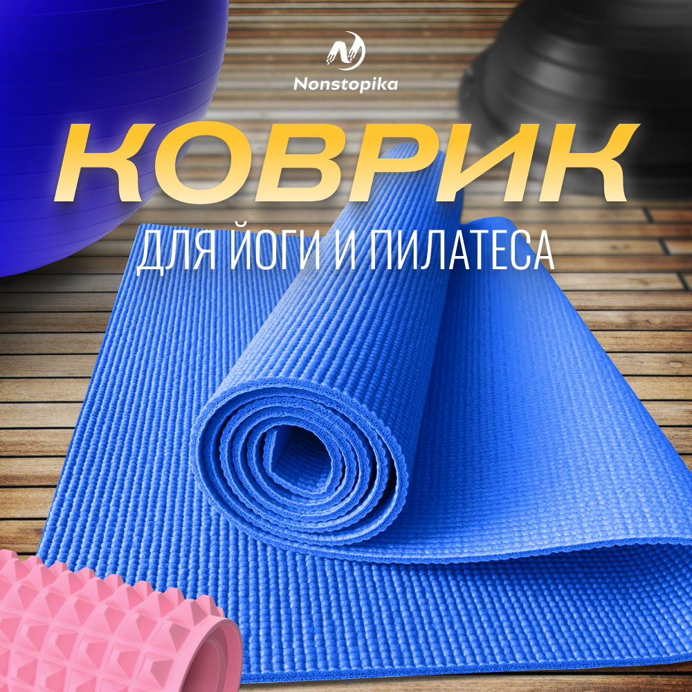 Спортивный коврик Nonstopika Relax, коврик для йоги и пилатеса, размер 173*61*0,5см, синий