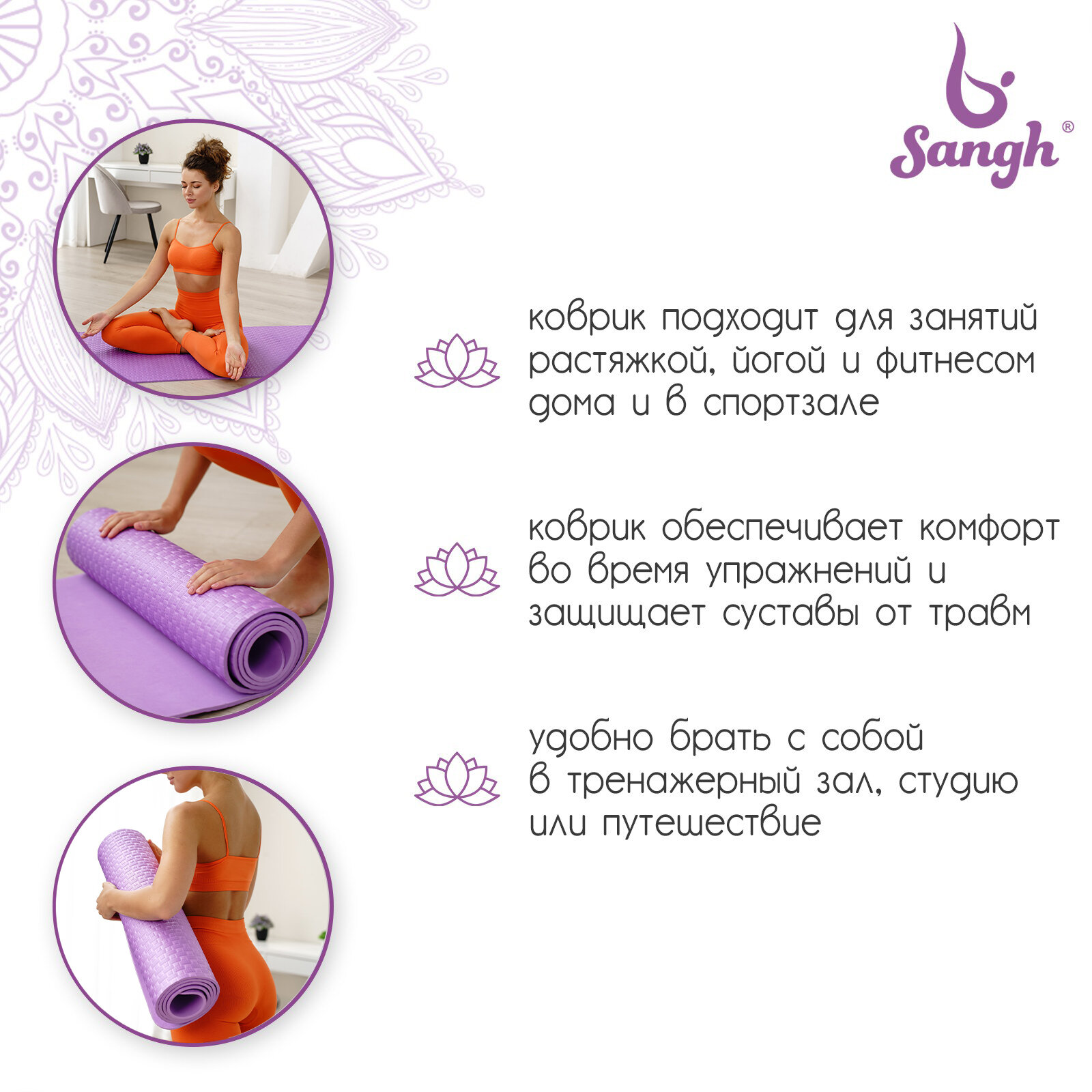 Купить Sangh Коврик для йоги Sangh, 183х61х0,7 см, цвет фиолетовый