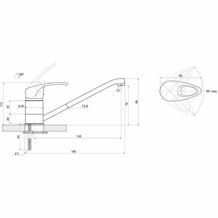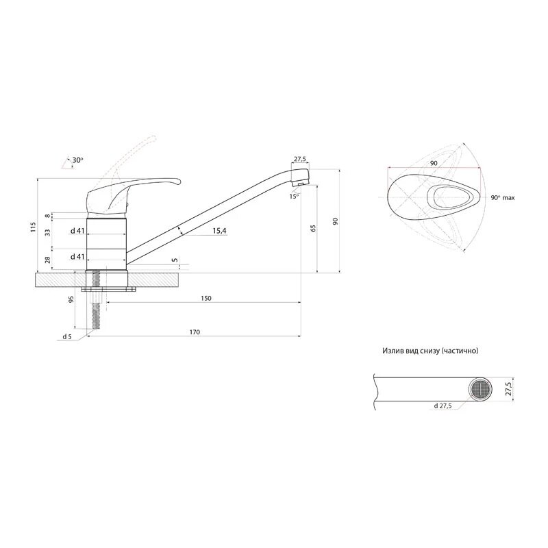 | Длина излива | 150 мм |