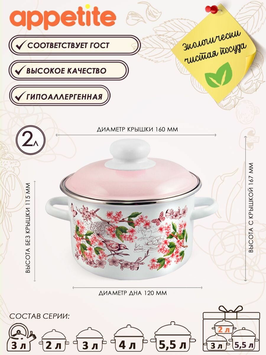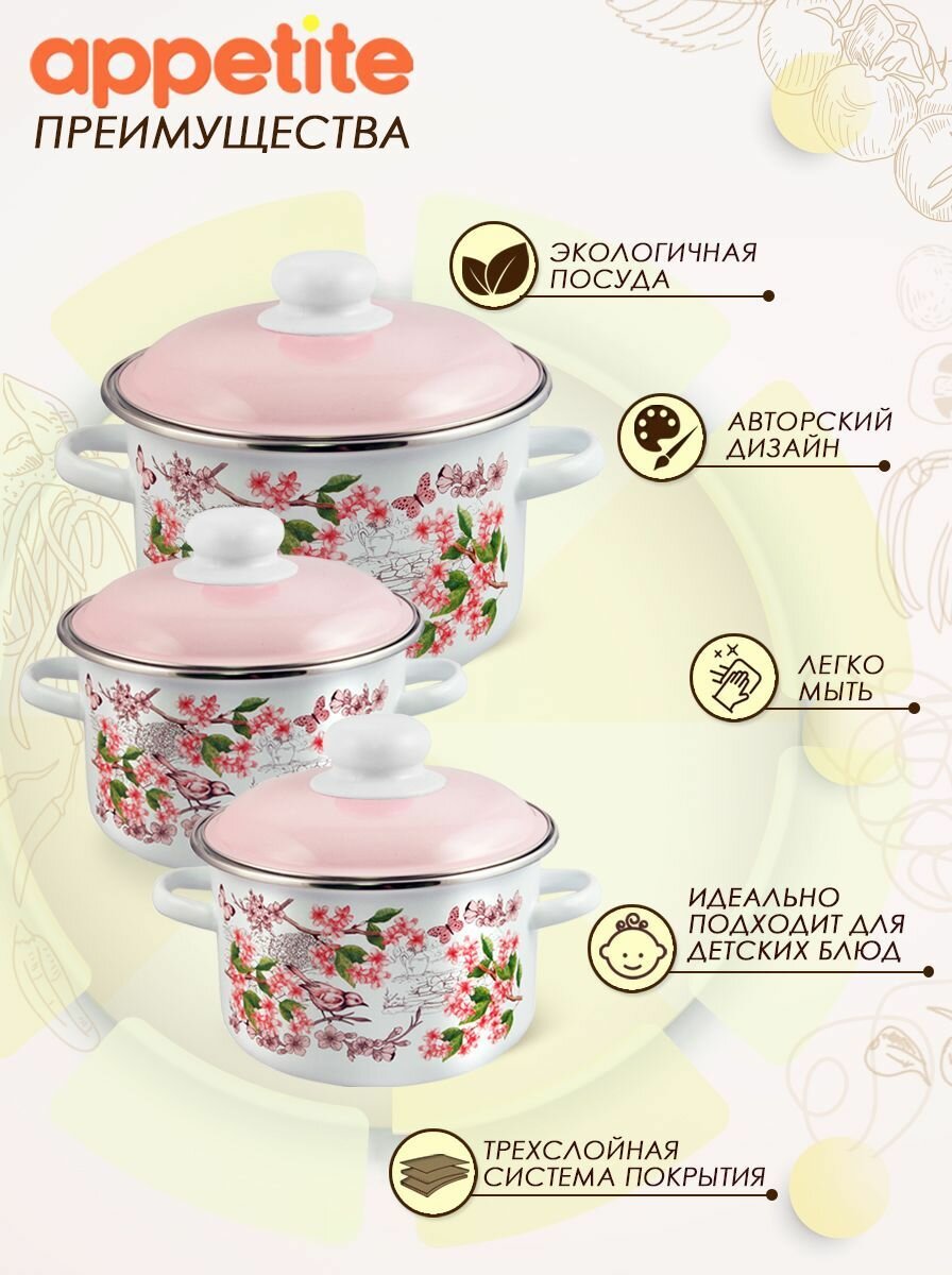 Набор эмалированных кастрюль Floral kitchen 3 предмета ( 2,3,4л) ТМ Appetite