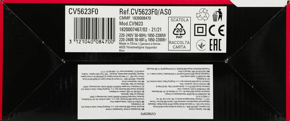 Фен Rowenta CV5623F0, 2200 Вт, черный
