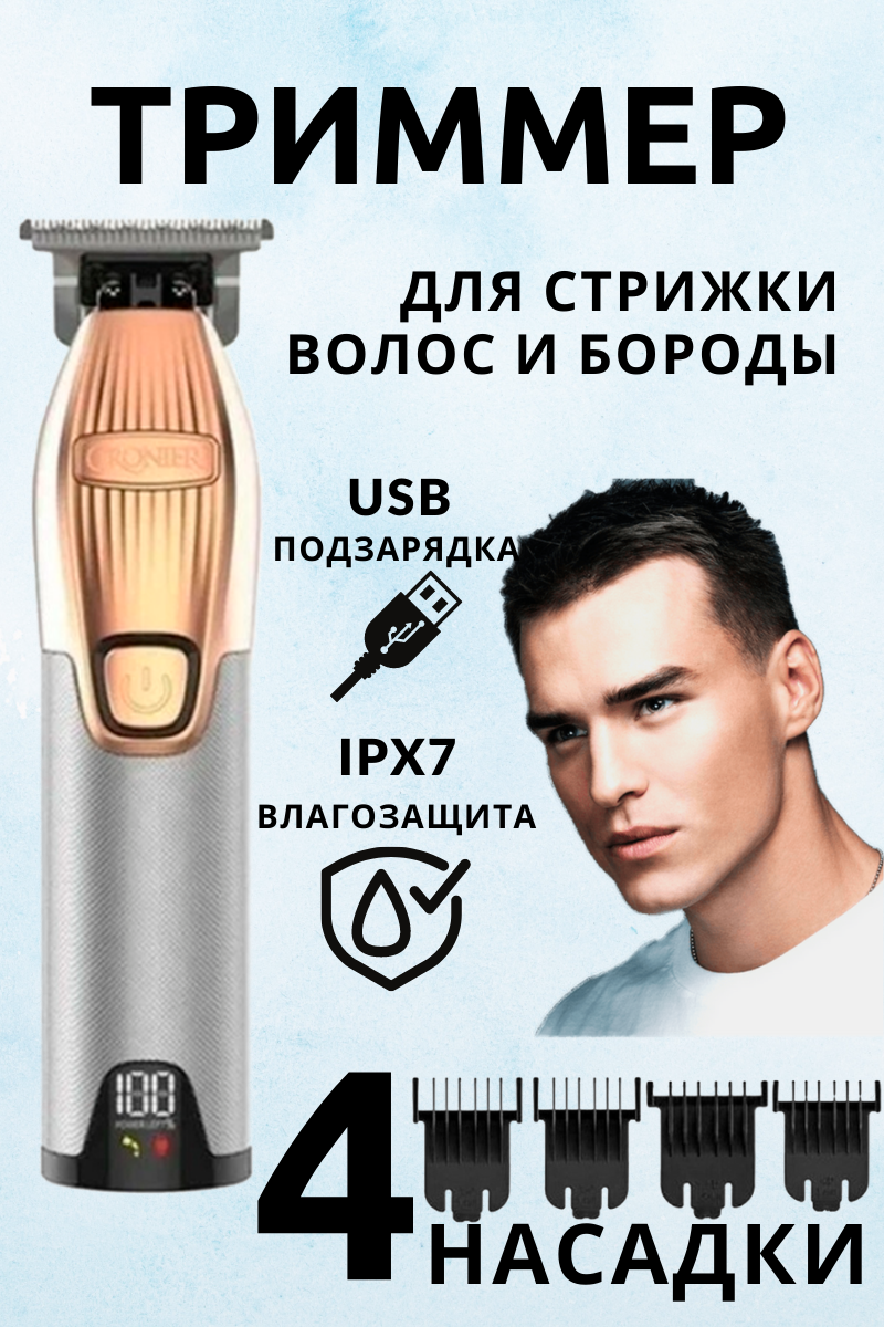 ORginal c Гарантия Триммер Cronier CR-35, серебристый/золотистый