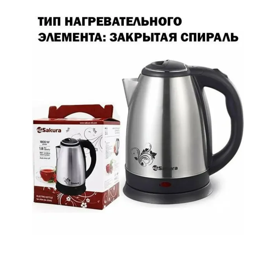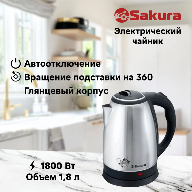 Чайник Sakura SA-2134S PROMO (1.8) нерж/глянцевая д интересное: