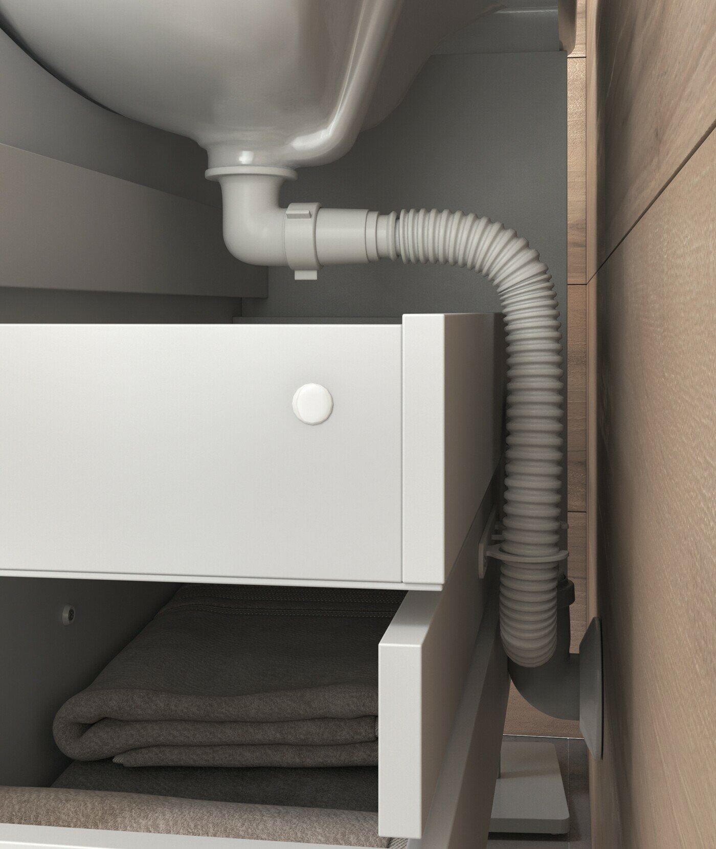 Дополняю через неделю. Дно выдвижных ящиков ужасного качества. Попало несколько капель воды (напоминаю, там в середине сифон висит) при отладке - пошли волны и пузыри. Днища сделаны из картона какого-то. Сэкономили. Плохо ! |