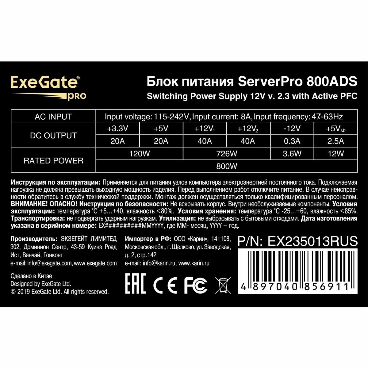 Купить Блок питания ExeGate ServerPRO-800ADS 800W (EX235013RUS)