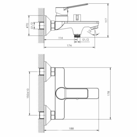 | Комплектация | Смеситель / однорежимная душевая лейка и душевой шланг длиной 1,5м. / держатель душевой лейки / эксцентрики / фум-лента / индивидуальный пакет / паспорт / гарантийный талон |