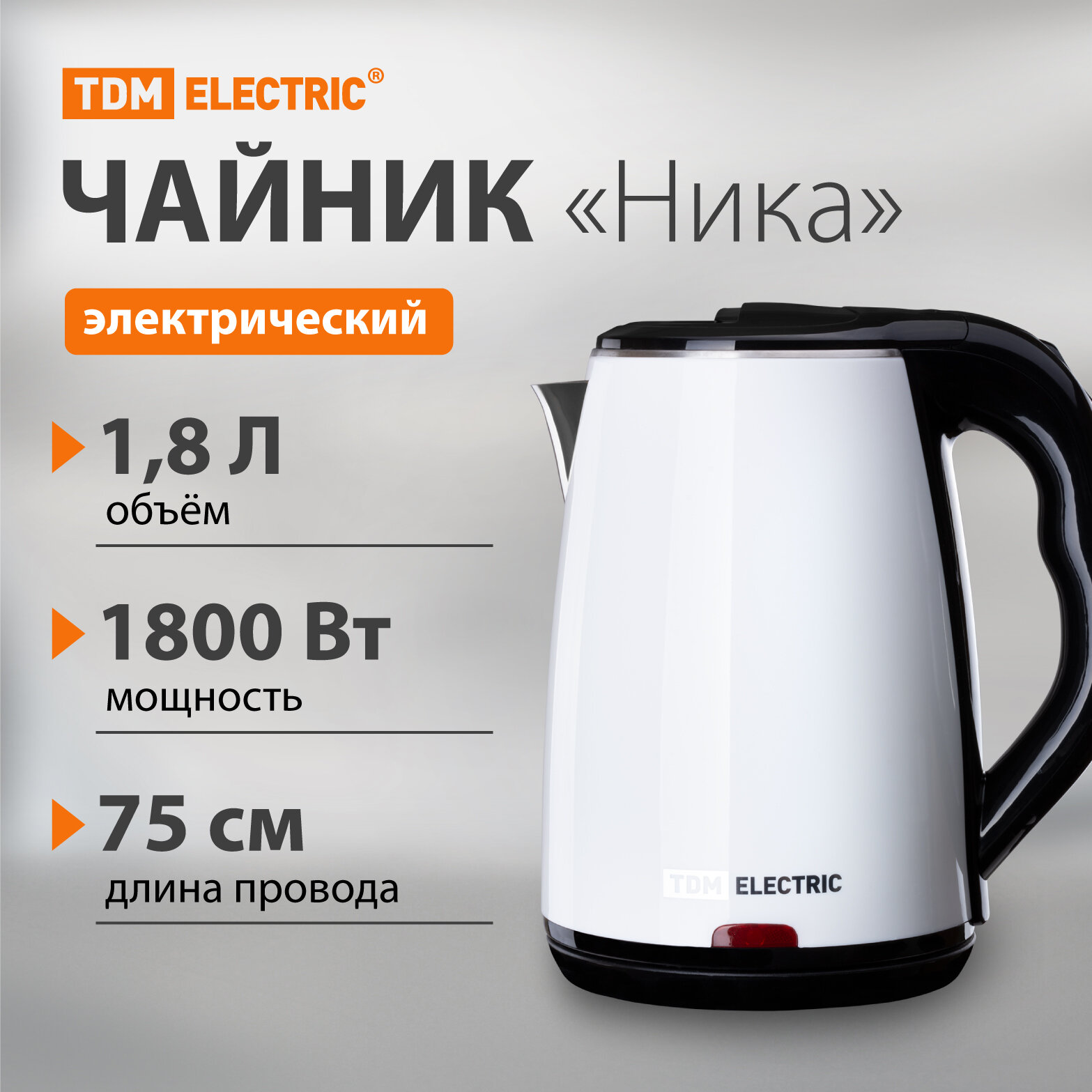 Чайник электрический TDM Ника нержавеющая сталь / пластик 1,8л 1800Вт белый
