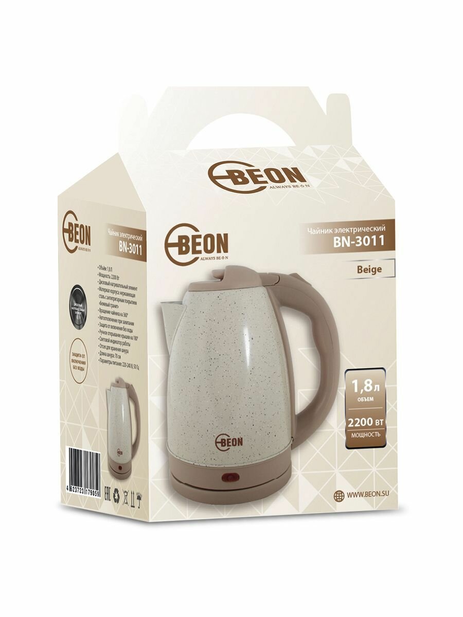 Чайник электрический BEON BN-3011 1,8 л, 2200 Вт, бежевый