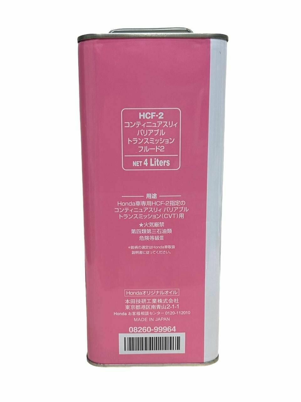 Масло трансмиссионное Honda Continuously Variable Transmission Fluid-2 HCF-2 синтетическое, для вариаторов, 4л, арт. 08260-99964