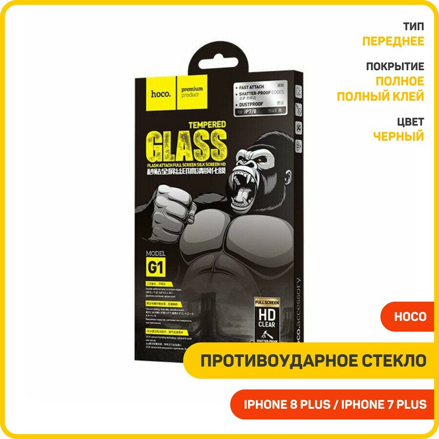 Противоударное стекло 2D Hoco G1 для Apple iPhone 7 Plus / iPhone 8 Plus (полное покрытие) черный
