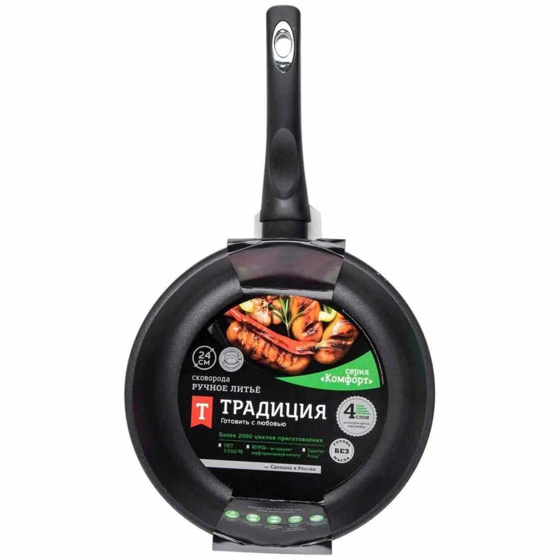 Купить Сковорода Традиция Комфорт ТК2241 антипригарная литая, несъемная ручка 24см