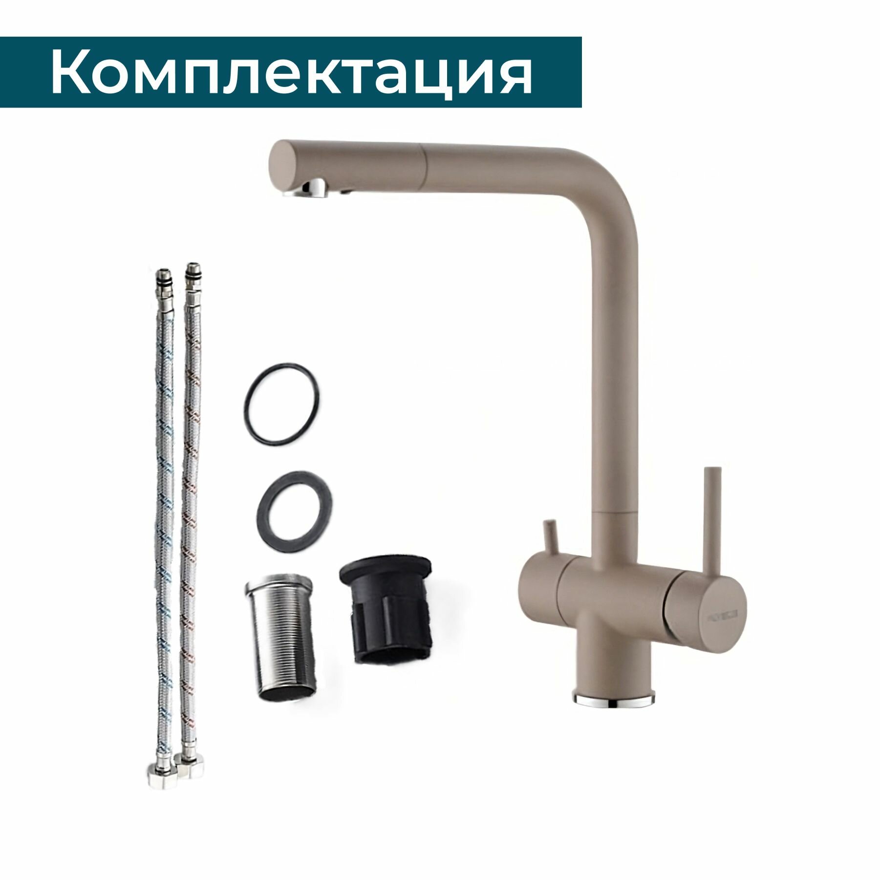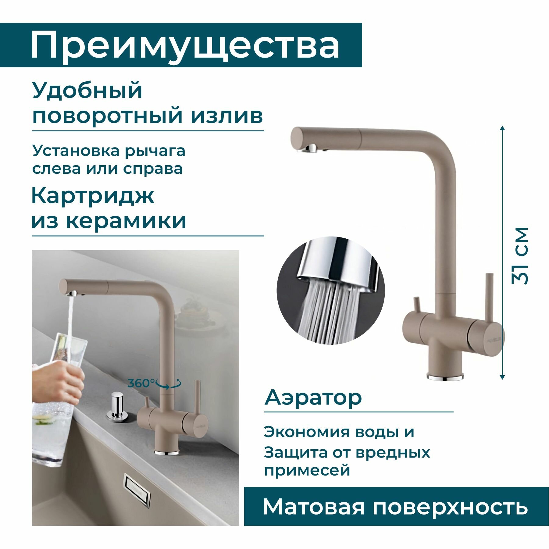 Купить Смеситель для раковины с фильтром и краном для питьевой воды ALVEUS AQUILA G55 поворотный для кухни и ванной. Латунь. Цвет бежевый
