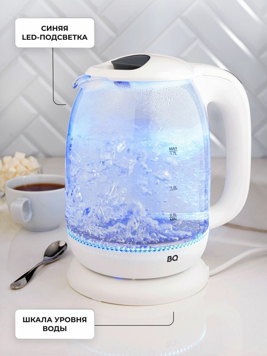 Чайник BQ-KT1830G, 2200Вт, 1,7л, стекло, белый