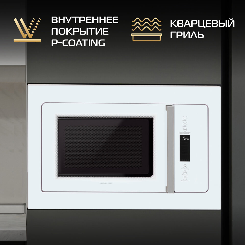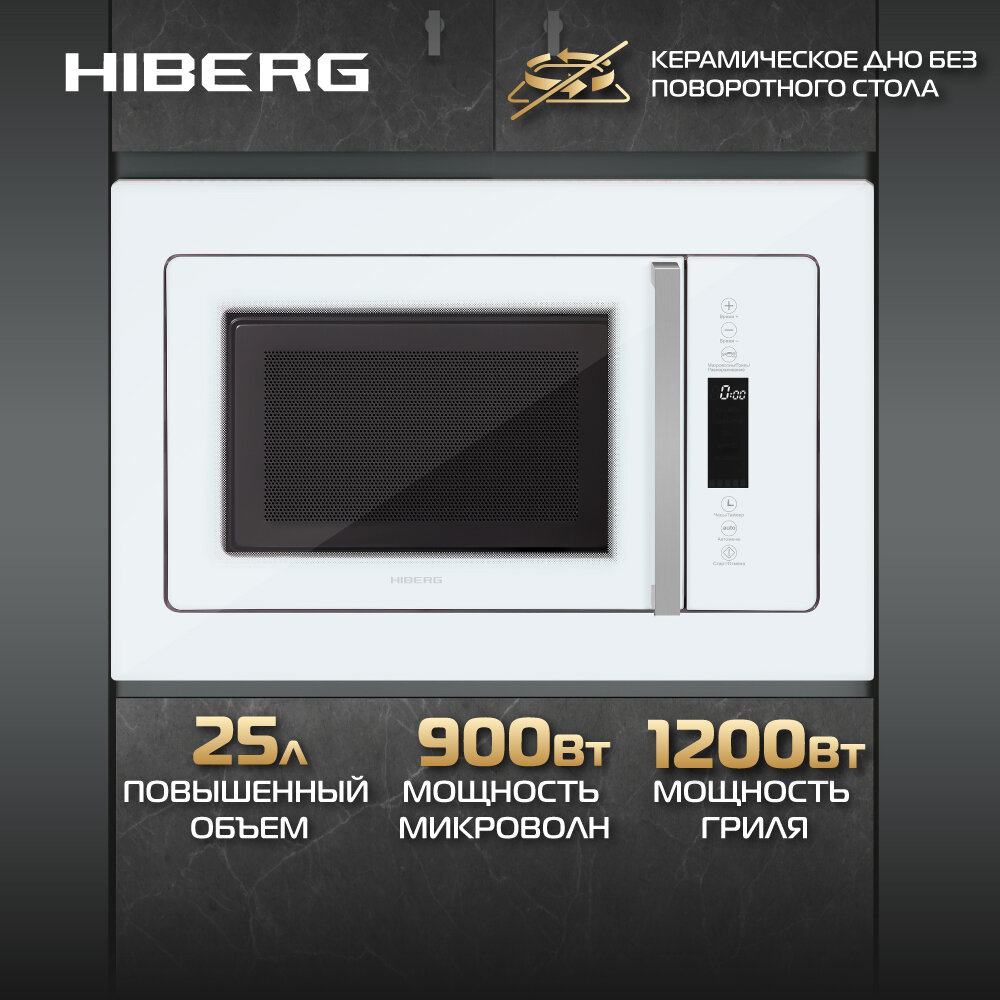 Встраиваемая микроволновая печь HIBERG VM 8505 W, 25 л, без поворотного стола, гриль интересное: