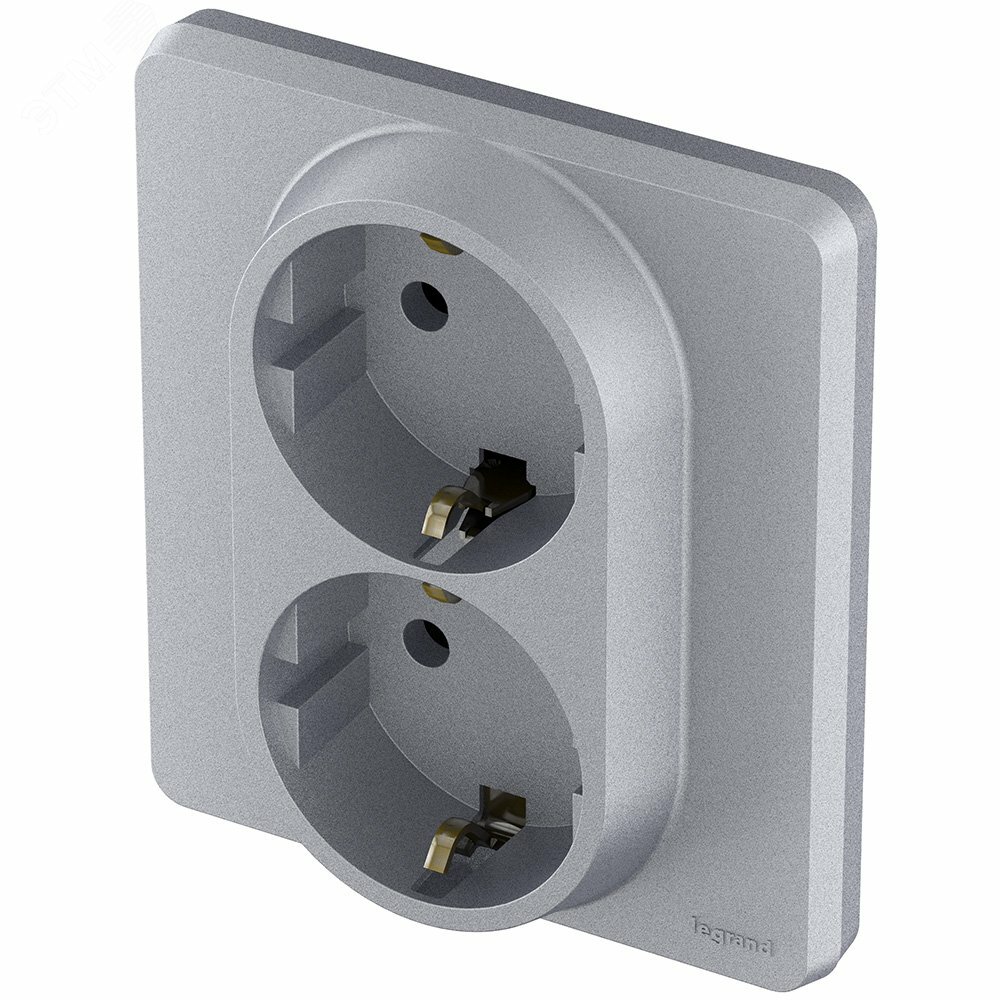 Розетка 2 x 2К+З немецкий стандарт 16 А 250 В~ INSPIRIA алюминий | код 673752 | Legrand (2шт.в упак.)