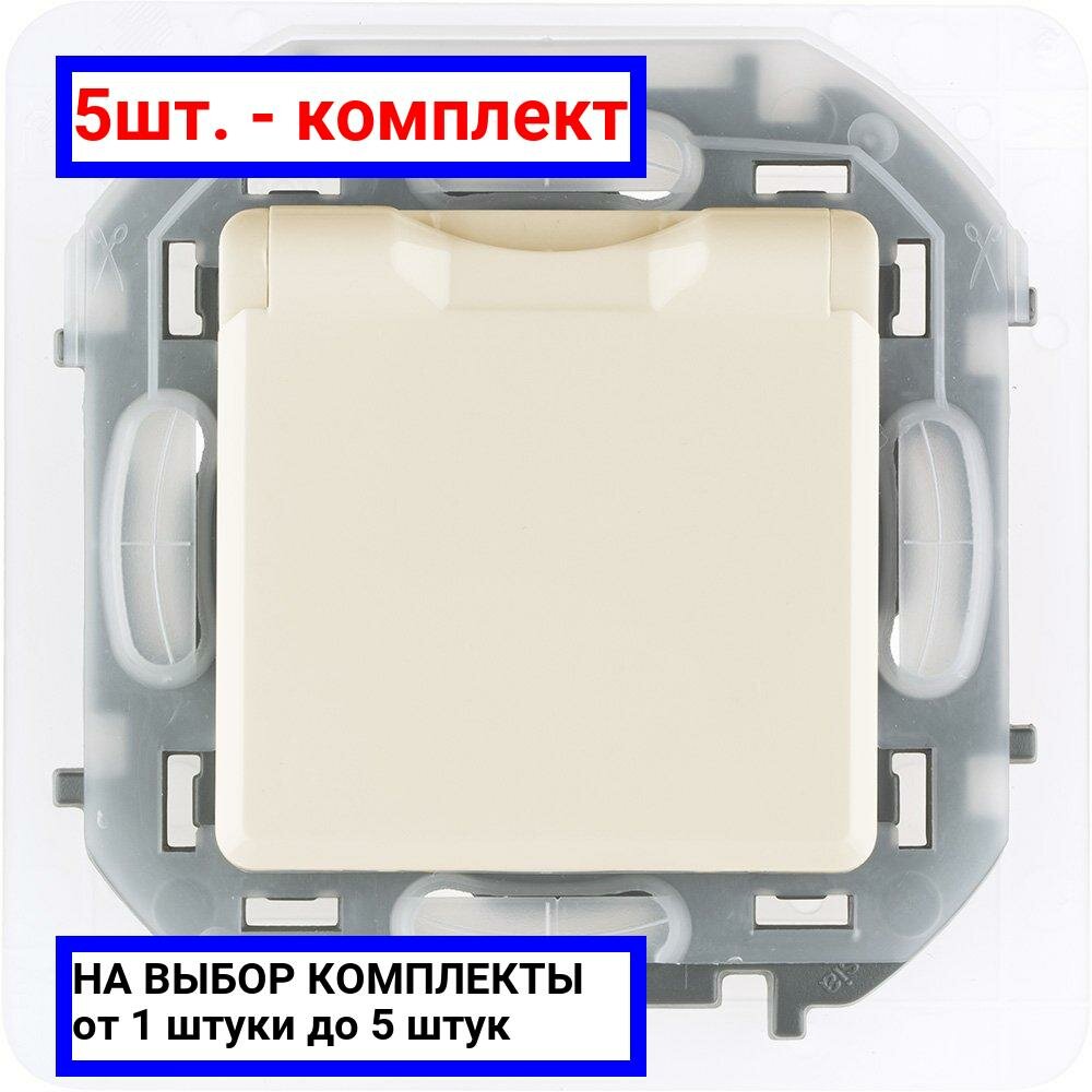 Купить 5шт. - Розетка 2К+З IP 44 с откидной крышкой и шторками немецкий стандарт 16 А 250 В~ INSPIRIA слоновая кость / Legrand; арт. 673741; оригинал / - комплект 5шт