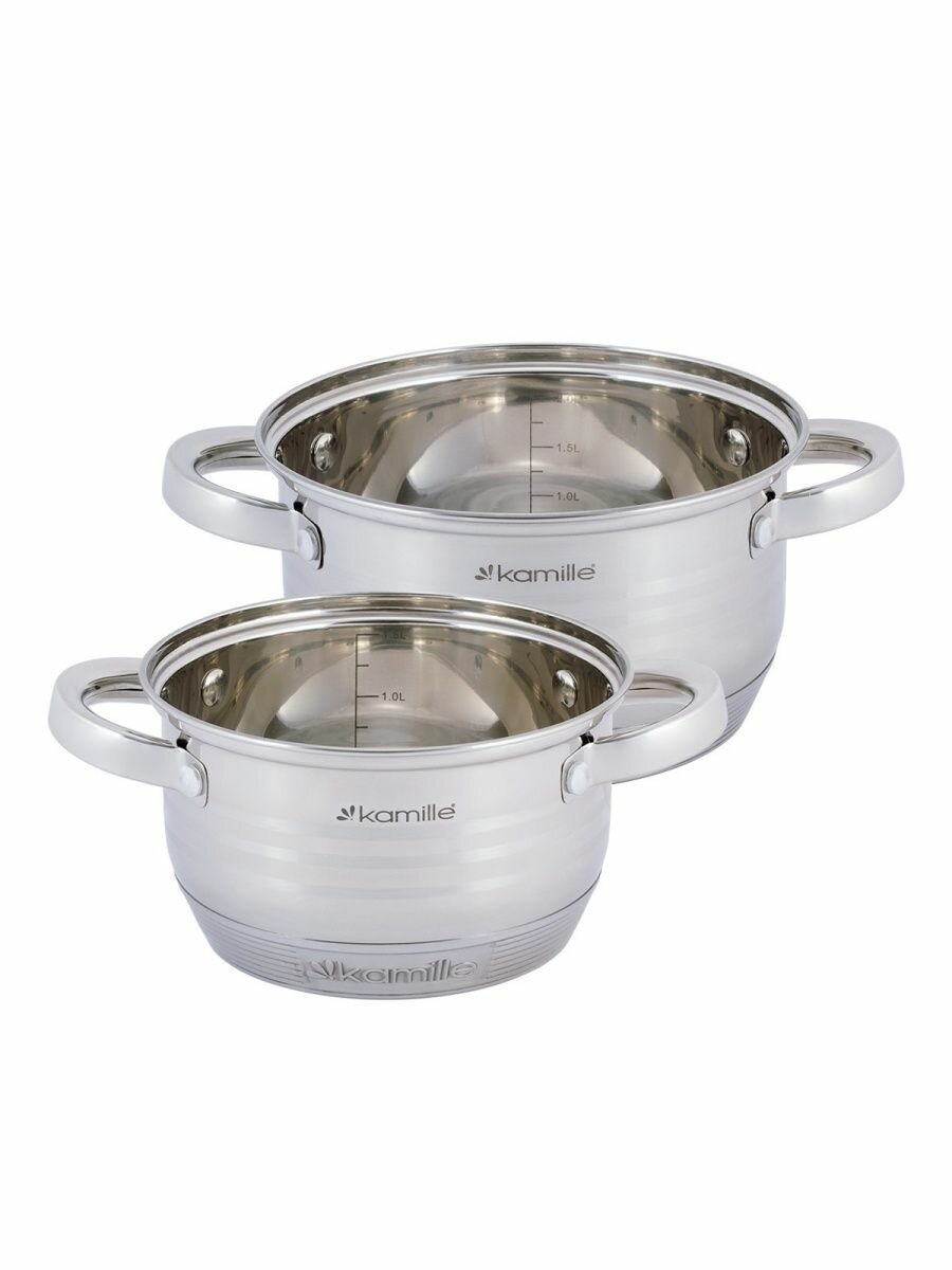 Набор из 2-х кастрюль Kamille 1.5 л, 2 л. из нержавеющей стали с крышкой