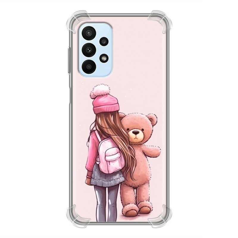 СохранитьДизайнерский силиконовый с усиленными углами чехол для Самсунг А23 / Samsung Galaxy A23 Девочка с игрушкой интересное:
