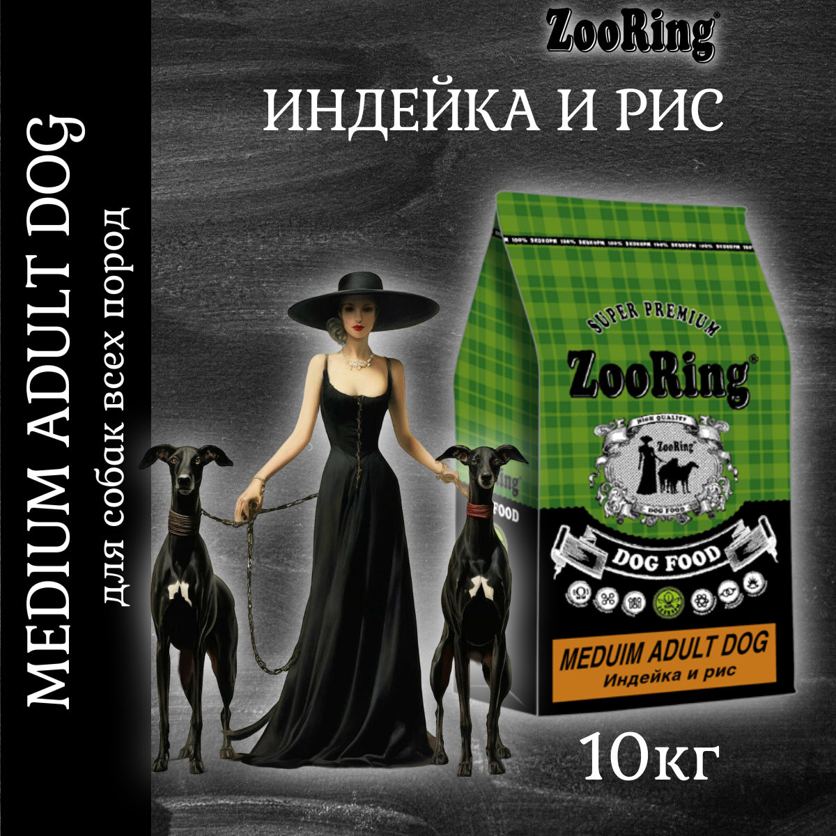 Сухой корм ZooRing для молодых и взрослых собак всех пород MEDIUM ADULT DOG Индейка и рис 1уп. х 10кг.