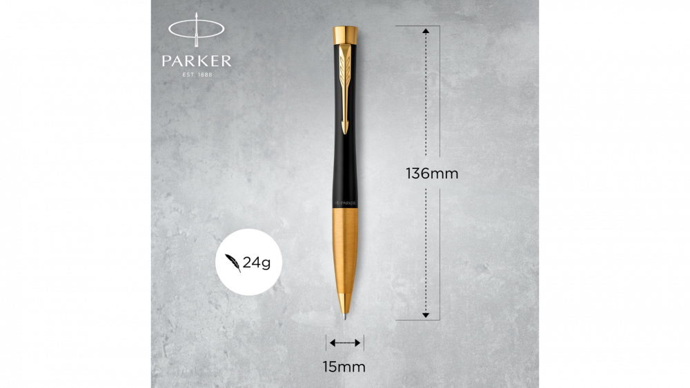 Шариковая ручка Parker Urban (матовый черный лак) Muted Black Gold Finish Trim, стержень: M, цвет че интересное: